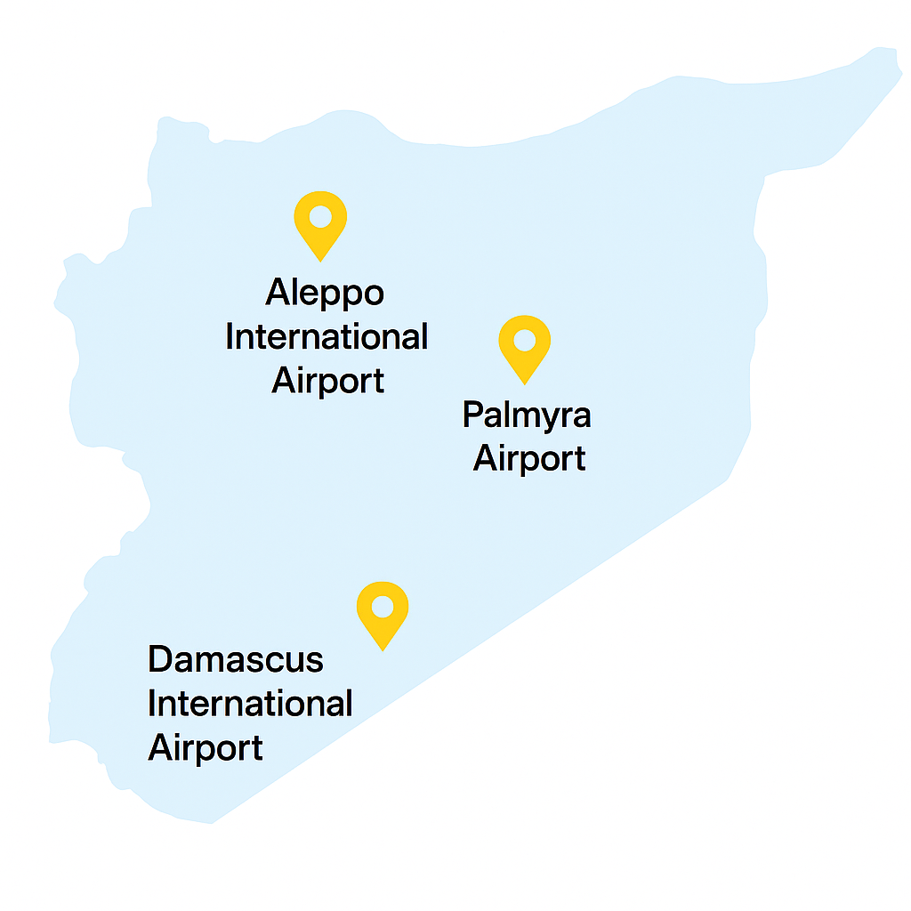 We proudly provide comprehensive aviation and ground services across Syria’s major airports, ensuring smooth operations, reliable support, and a seamless experience for every flight. Our coverage includes Damascus, Aleppo, Latakia (Bassel Al-Assad), Qamishli, Deir ez-Zor, and Palmyra Airports—connecting your journey with efficiency and care.